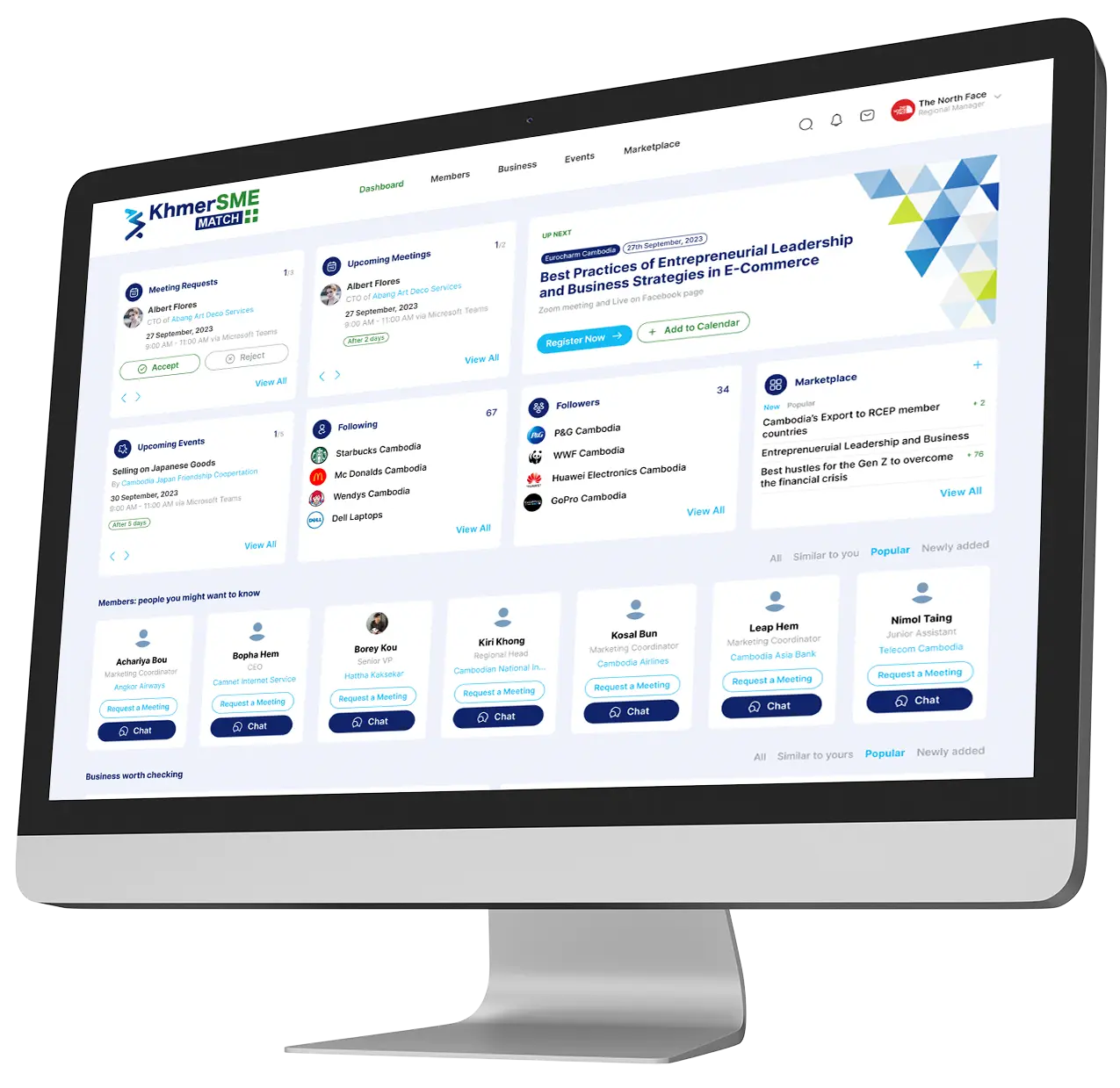 KhmerSME MATCH is a national digital platform designed to connect micro, small, and medium enterprises (MSMEs) in Cambodia. It offers essential tools for business matching, networking, event participation, and virtual marketplace exploration. All registered users can access these services free of charge.